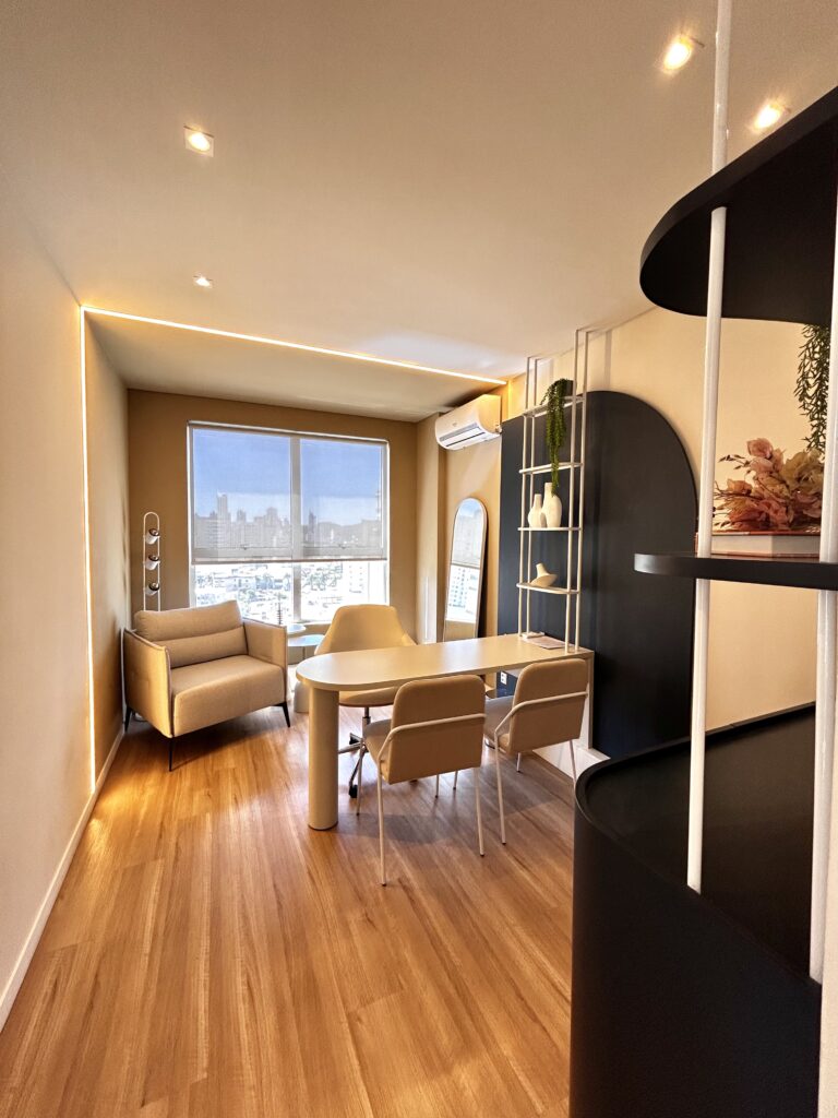 Equipado com uma maca/poltrona fixa e elétrica, lupa luminária 10x, frigobar para armazenamento de produtos e móveis planejados com pia e mesa de apoio, cada detalhe foi pensado para proporcionar praticidade e conforto, tanto para você quanto para seus pacientes.