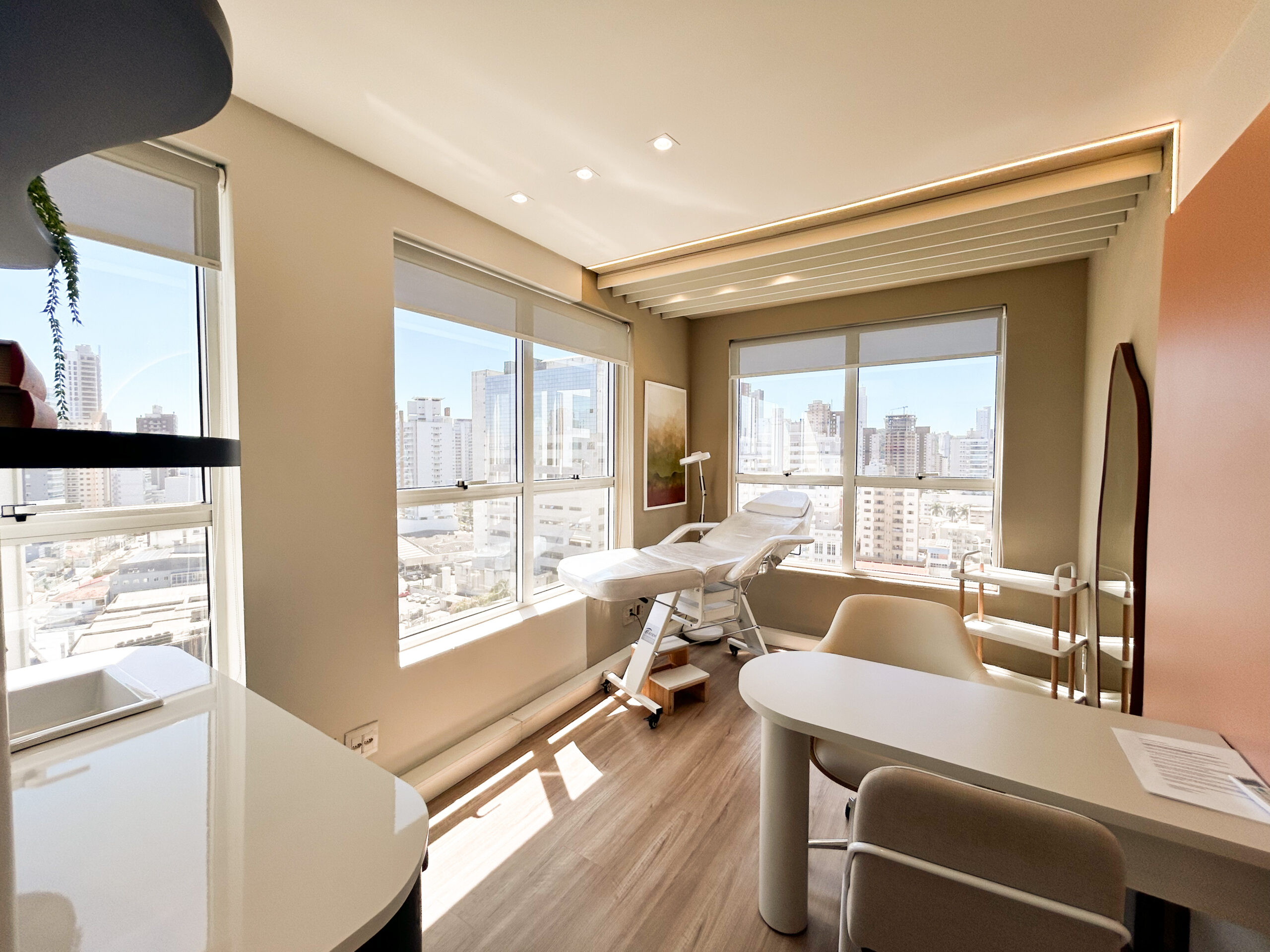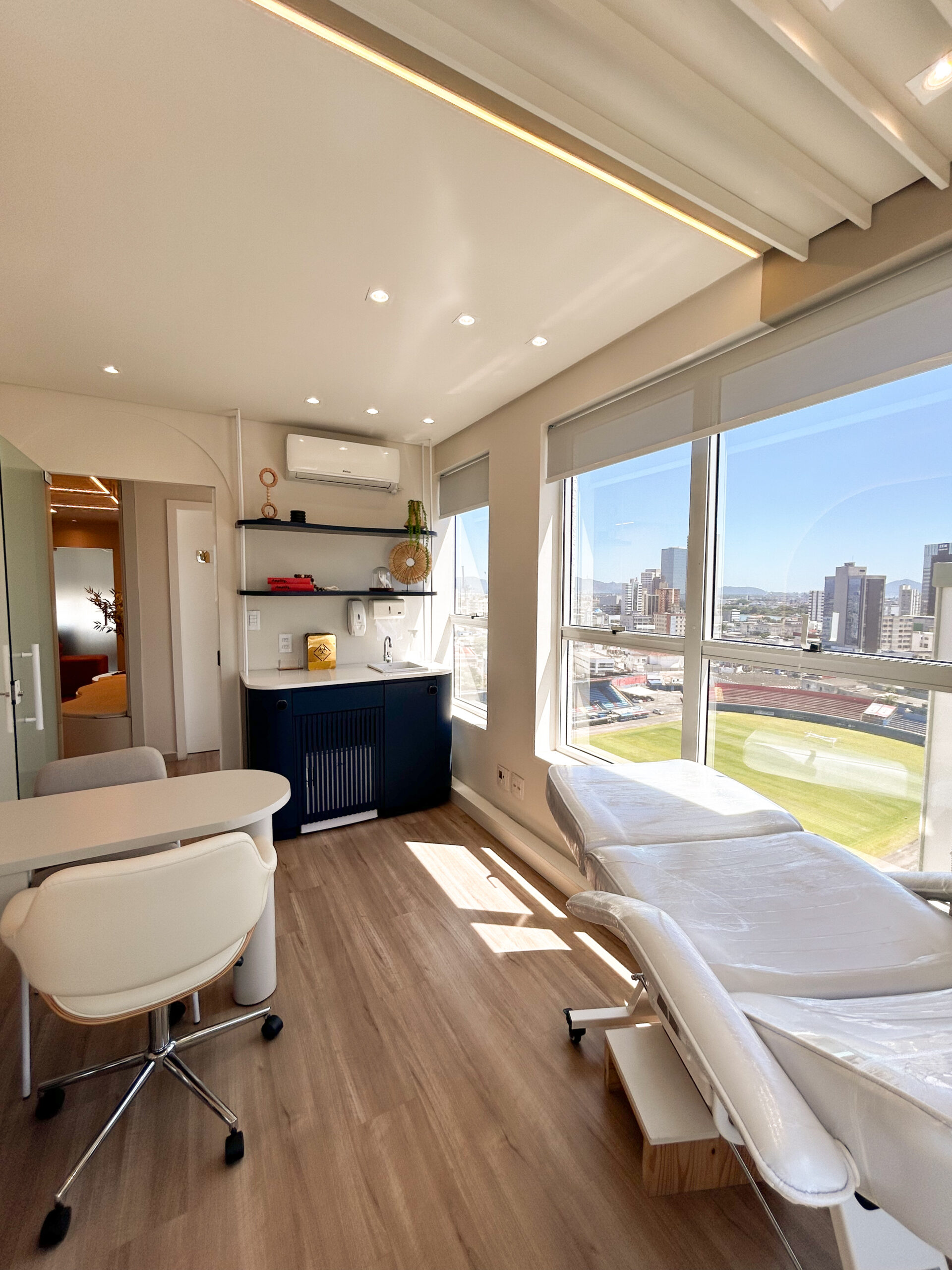 Equipado com uma maca elétrica, frigobar para armazenamento de produtos e móveis planejados com pia e mesa de apoio, cada detalhe foi pensado para proporcionar praticidade e conforto, tanto para você quanto para seus pacientes.