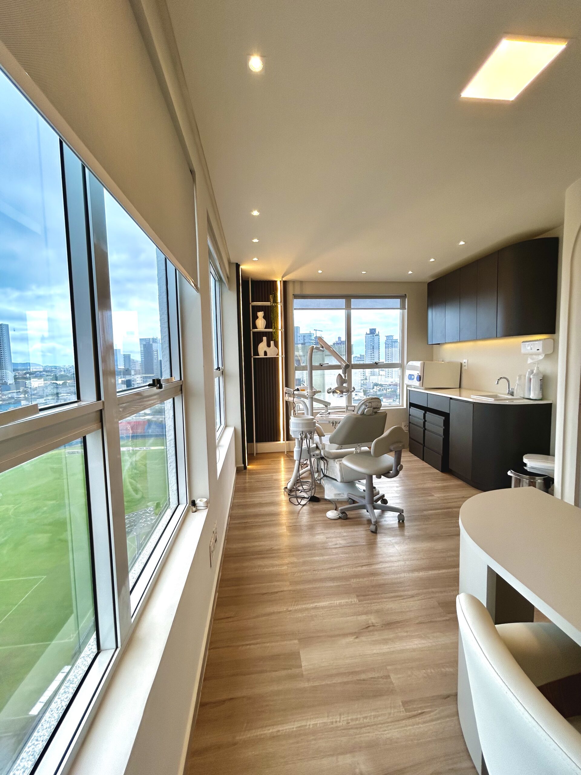 Equipado com bomba à vácuo, perfeito para cirurgias odontológicas. Também pode ser alugado para especialistas em harmonização facial, nosso consultório oferece uma infraestrutura completa para elevar a experiência dos seus pacientes. Equipado com uma cadeira odontológica moderna, autoclave, ultrassom, móveis planejados com pia, cada detalhe foi pensado para unir funcionalidade e conforto. Tudo isso com uma vista panorâmica do Porto de Itajaí – SC.